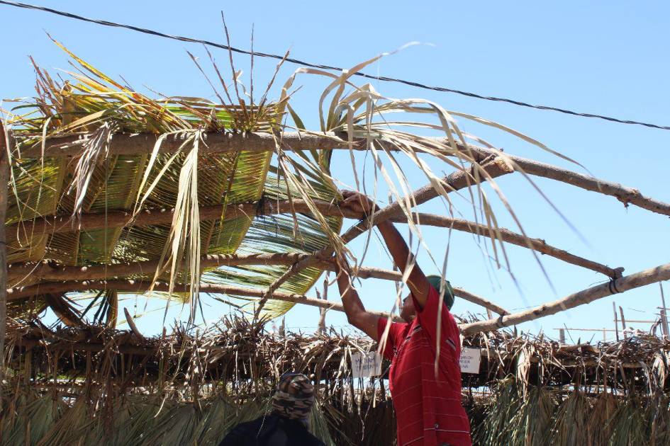 En la zona decenas de personas laboran, instalando aun postería o material eléctrico, techando o ampliando con palma lo que serán las casas provisionales de las familias desde el 19 hasta el 22 de mayo.