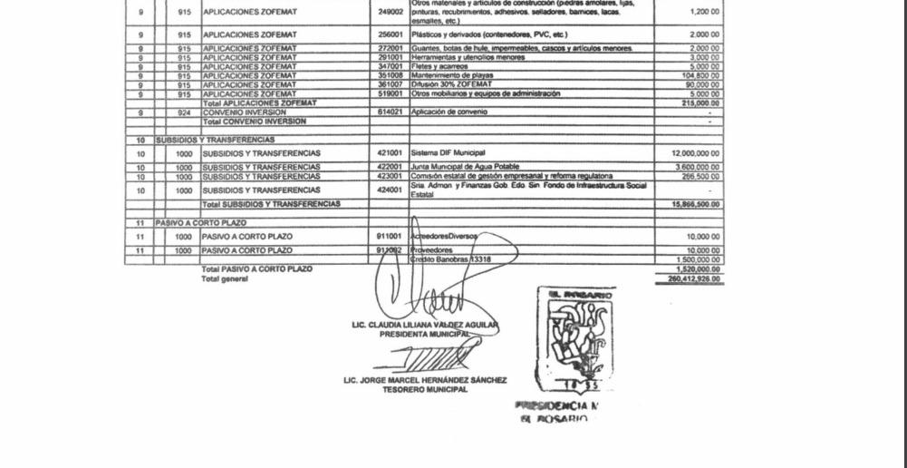 EL ROSARIO._ Tras publicarse en el Diario Oficial del Estado el Presupuesto de Egresos para 2024, el Gobierno de Rosario proyecta erogar 260 millones 412 mil 926 pesos el próximo año.