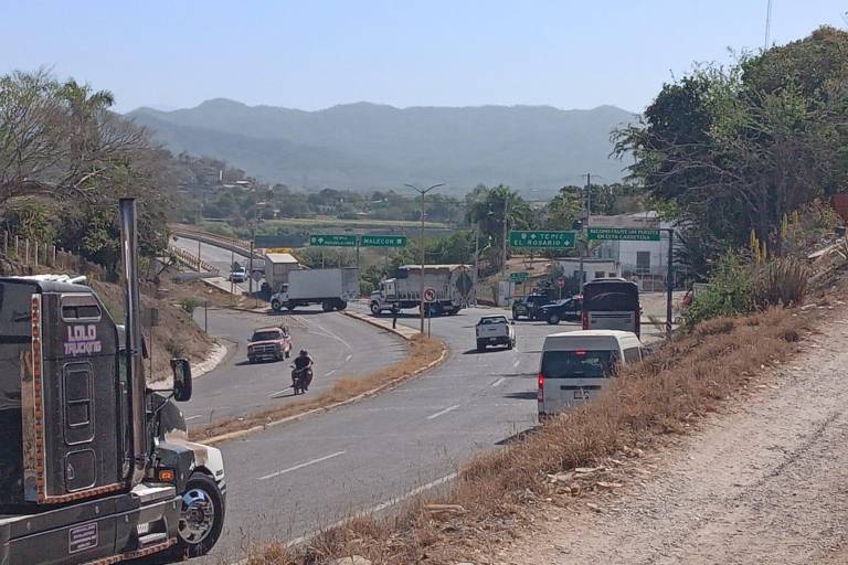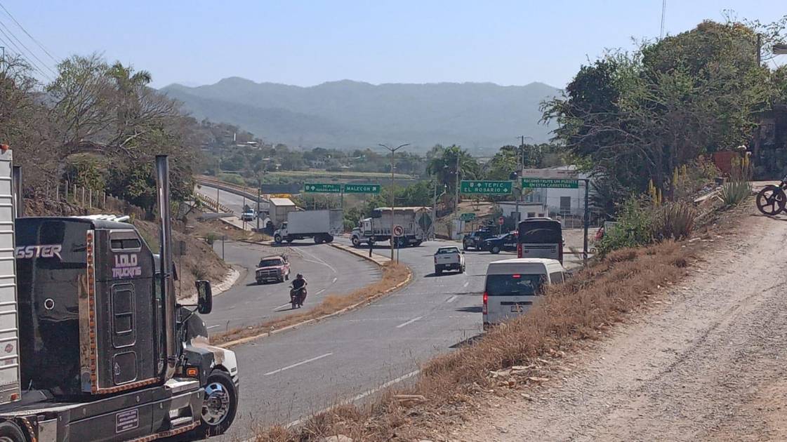Bloquean con vehículos y ponchallantas el puente sobre el río Baluarte en la carretera México 15, al sur de Rosario