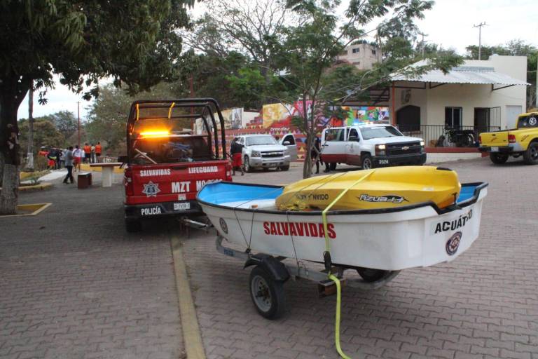 Son cuatro los elementos de la Secretaría de Marina, que se distinguen por un uniforme color naranja, y por parte del Escuadrón de Salvamento Acuático de la la Secretaría de Seguridad Pública de Mazatlán su uniforme es de color rojo.