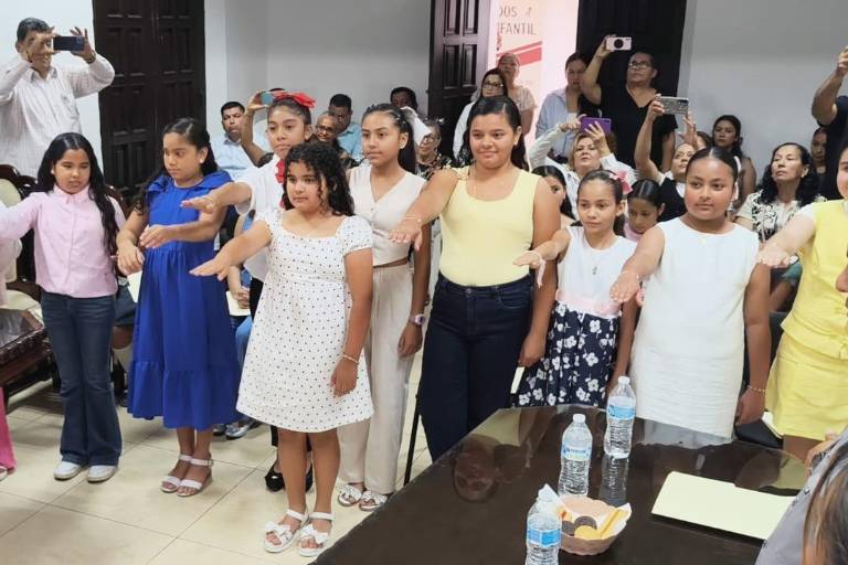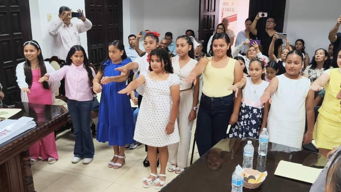 EL ROSARIO._ Un Cabildo Infantil conformado principalmente por niñas rindió protesta durante la sesión ordinaria del mes, donde se designó a Ninah María Rendón Martínez como Alcaldesa Infantil, regidores y síndica procuradora.