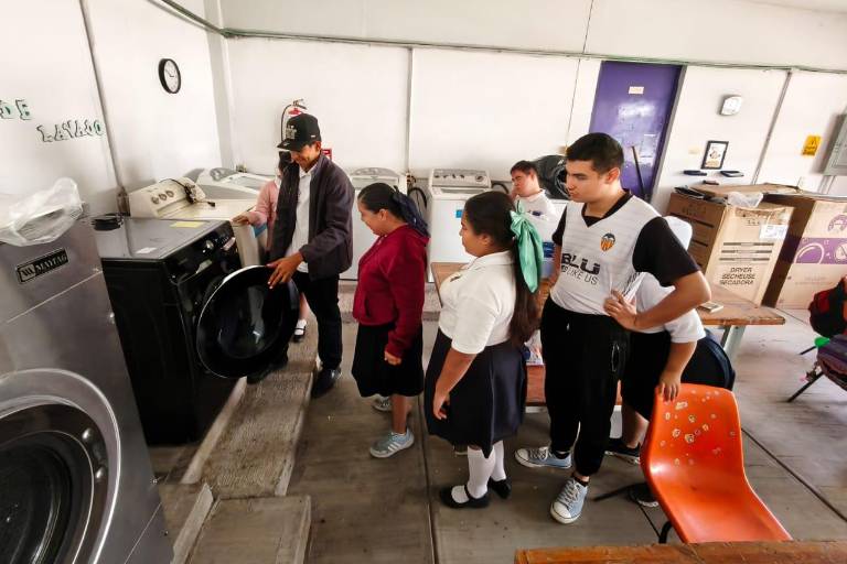 EL ROSARIO._ Al retomar actividades, el taller laboral del Centro de Atención Múltiple (CAM) 11 abrió una lavandería operada por sus alumnos, con el objetivo de fomentar la inclusión y el aprendizaje práctico.
