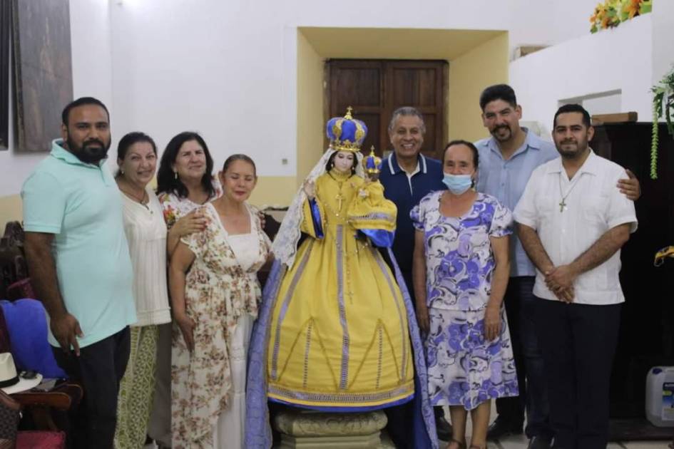 Se informó que el vestido color mostaza y azul que porta la imagen fue donado por María Célida Ortega Talavera y su familia, para darle gracias a Dios.