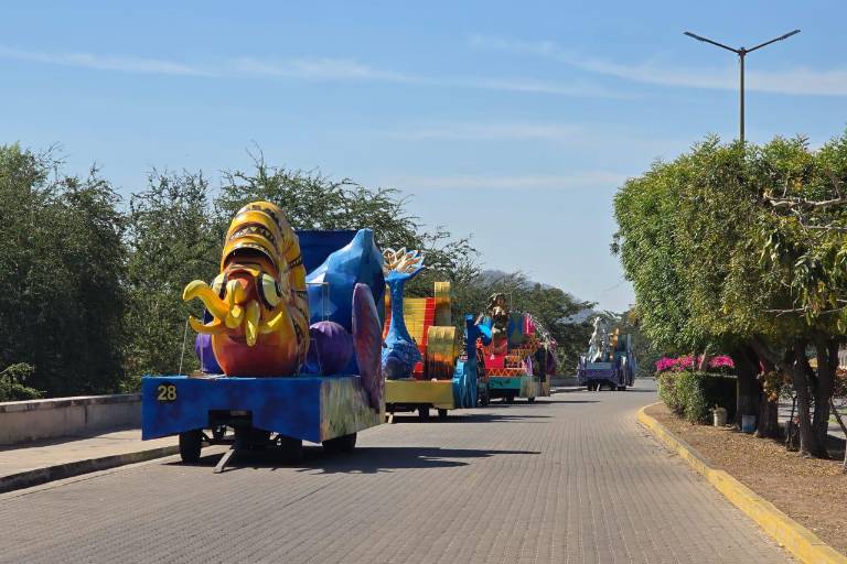 EL ROSARIO._ Tras una semana de que tuvo lugar el Carnaval Rosario 2025, alegorías que prestara el Carnaval de Mazatlan “La Pela” para este evento, en la zona del malecón Juan Millán aún permanecen varados los carros alegóricos que utilizaron los reyes entrantes y salientes.