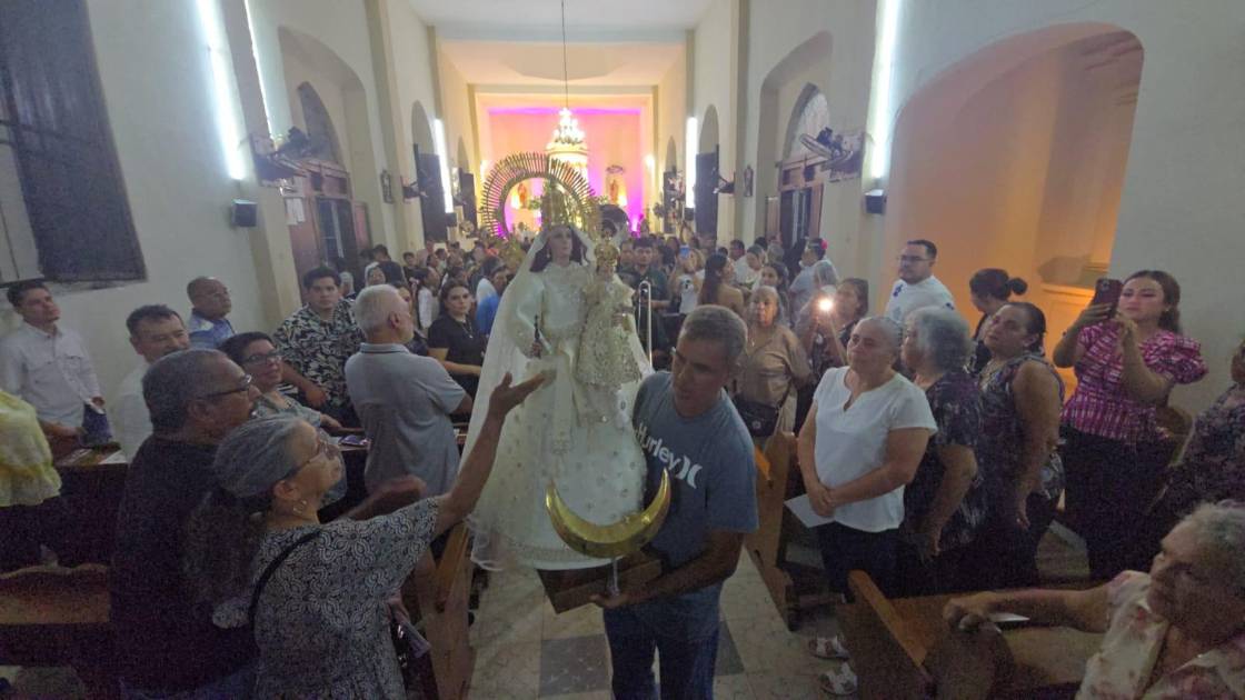 Fue durante los primeros minutos de la fiesta patronal que la venerada imagen descendió de su retablo para abordo de un carro decorado e iluminado realizar el primer recorrido como se instituyó desde la pandemia del Covid -19, donde el contacto es limitado.