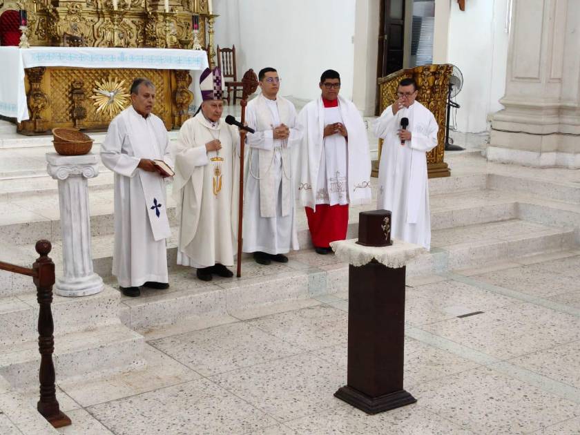 Al concluir la eucaristía, el Obispo junto a los sacerdotes, elevaron una plegaria para posteriormente bendecir las cenizas de la empresaria Martha Solorza.