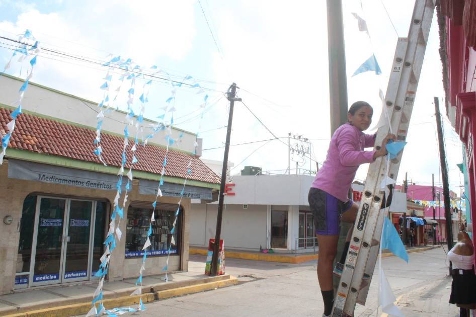ELROSARIO._ Lo que empezó con la decoración de la frutería de su mamá para el día de Nuestra Señora del Rosario, para María del Rosario Morales Aguilar, mejor conocida como “Chiquita”, la colocación de banderitas se ha convertido en un oficio desde hace 15 años.