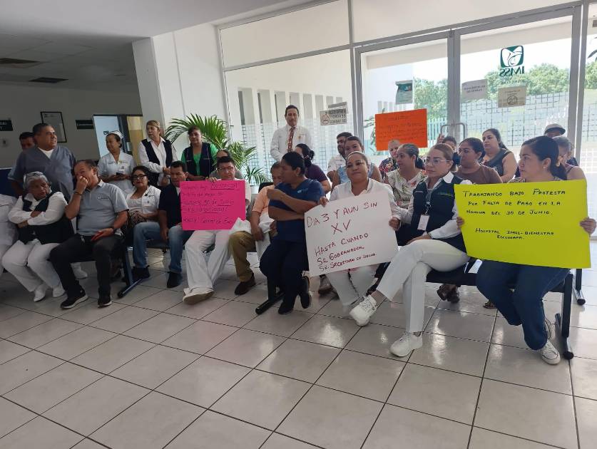 ESCUINAPA._ Trabajadores del Hospital IMSS Bienestar y otras unidades de salud cerraron las puertas a la consulta externa al cumplirse tres días sin el pago de la quincena.