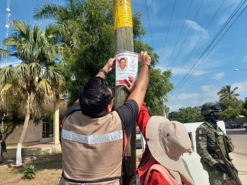 “No habíamos venido, estamos en Mazatlán, pero ya recorrimos Concordia, Rosario, aquí se fue al último, venimos a pegar carteles, nosotros no buscamos culpables, buscamos a nuestros hijos nada más”, dice una de las integrantes del Colectivo.