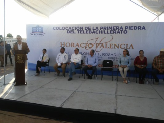 EL ROSARIO._ Con una inversión de 3 millones 998 mil 623 pesos autoridades de diferentes niveles realizaron la colocación de la primera piedra del Telebachillerato "Horacio Palencia" en la comunidad del Tablón 1.