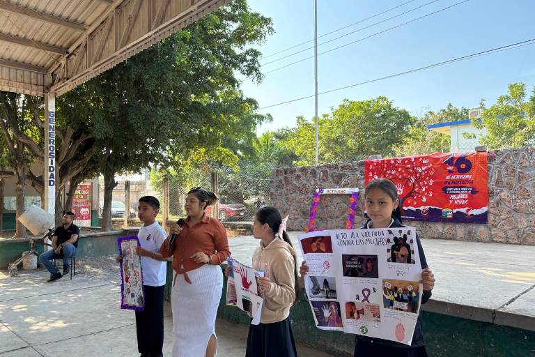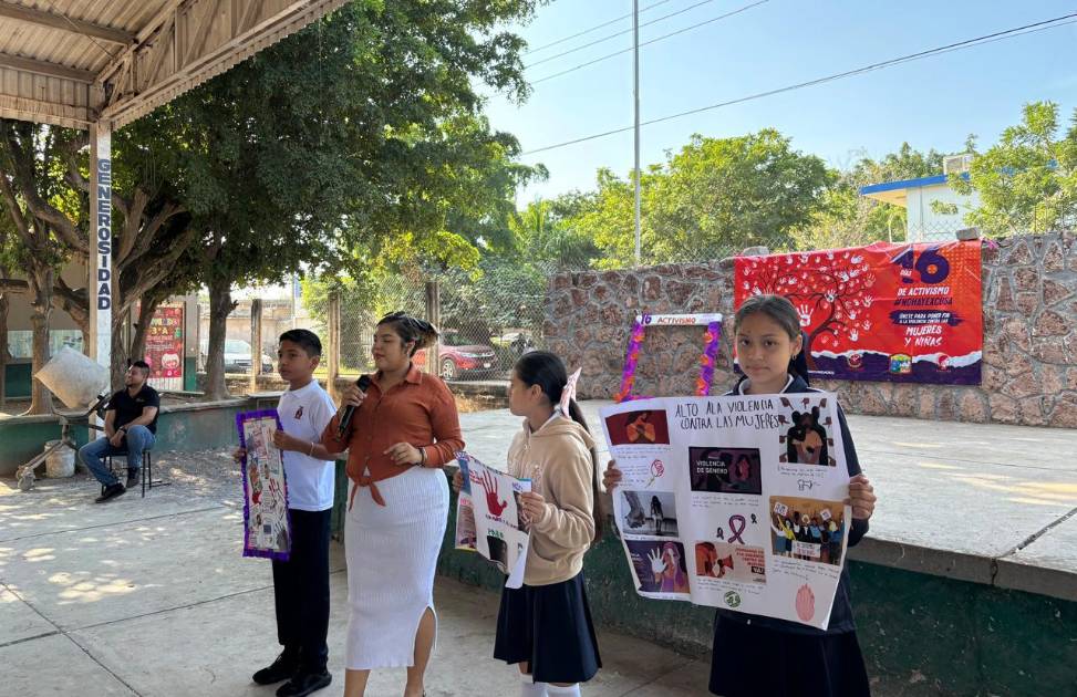 ESCUINAPA._ Con una feria de carteles elaborados por niños de la primaria Profesor Maximiliano Hernández Escobedo, en Isla del Bosque, se conmemoró el Día de Eliminación de la Violencia contra la Mujer.