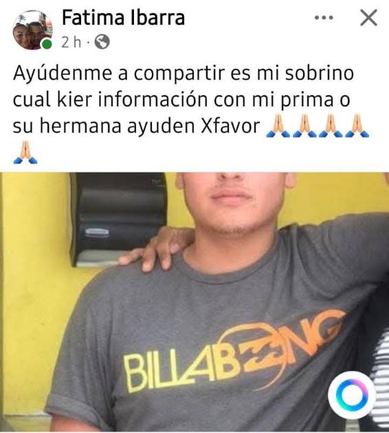 Lo anterior se ha difundido por medio de redes sociales, principalmente por familiares y amigos, exhortando a todos a ayudar a dar con su paradero.