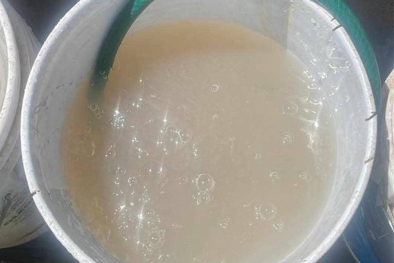 “Ya son dos meses en que el agua sale así, primero empezó a salir un olor como abate (en junio) y decíamos que por el dengue, después empezó a salir más clara y ahora tiene tres o cuatro días que sale así”, dijo Jacqueline Salas.