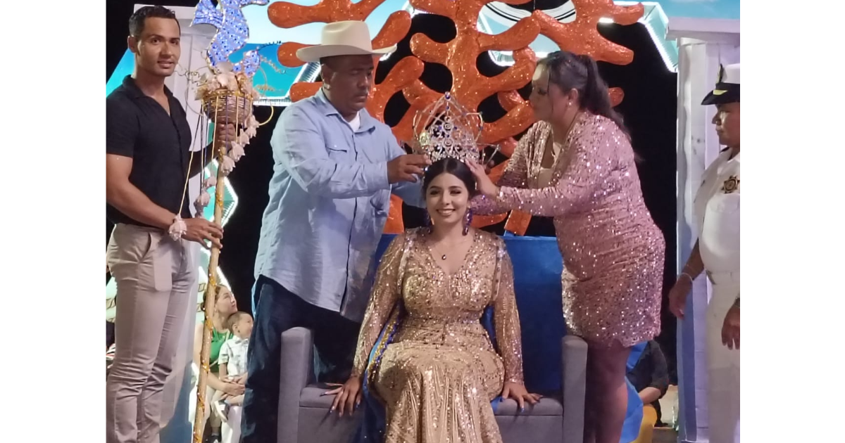 Coronan a Estrella I, la Reina de las celebraciones del Día del Marino en Teacapán