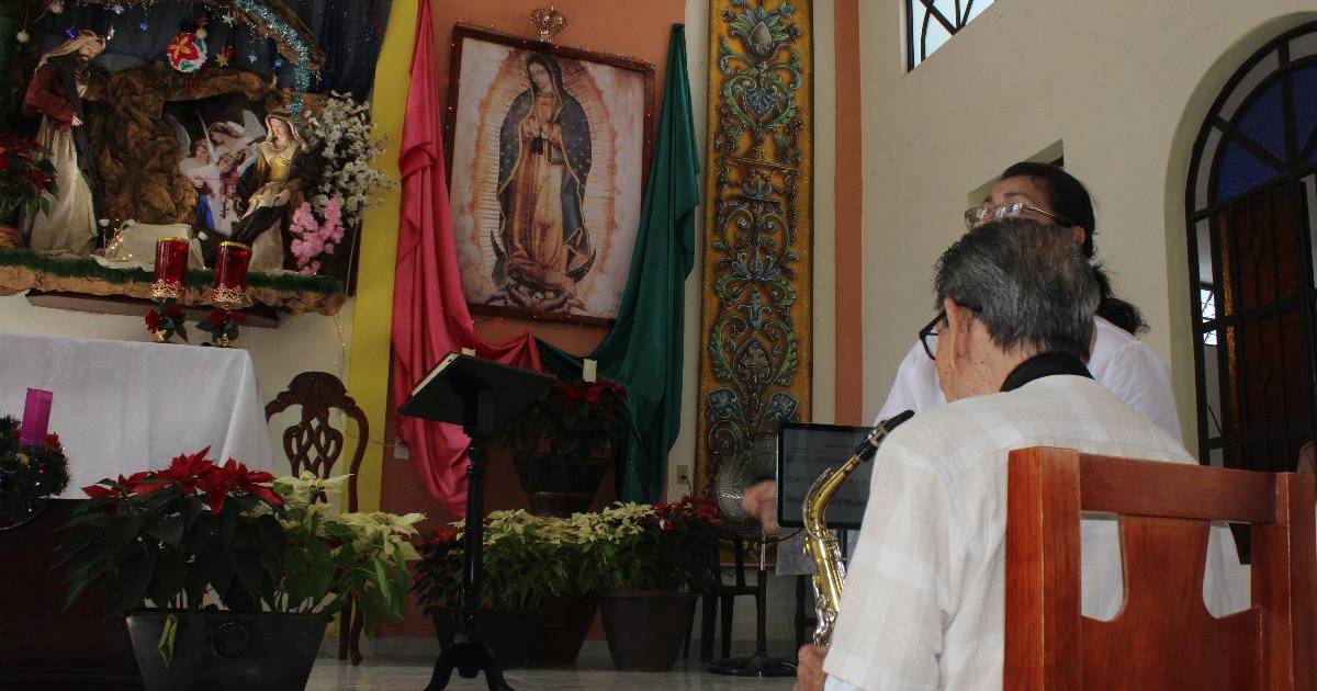 ESCUINAPA._ El sonido del saxofón resonó en la Parroquia de San Juan Pablo II, un sonido emitido a través del músico Ignacio Millán Ramos ‘Nacho Millán, el lujo de Escuinapa’.