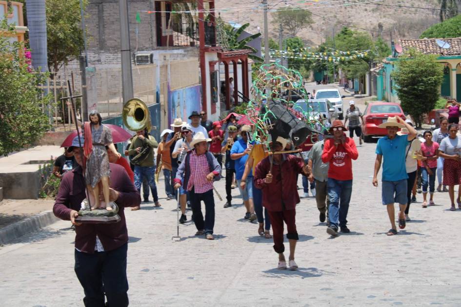 Con la música de la banda “Hermanos Martínez”, a las 12:00 horas se dio inicio a la procesión para terminar en la zona del río conocida como las juntas, unión del Río Baluarte y el Río las cañas de San Antonio.