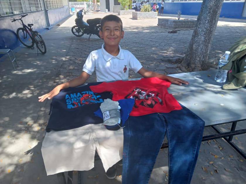 ”Gracias a las personas que me donó esto, soy Jesús Malverde, que le vaya bien en la vida; gracias por lo que me regaló, esta ropita bonita que me dio”, expresó el estudiante de segundo grado.