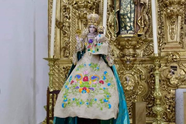 "Cumplen tradición y cambian de vestido a la Virgen del Rosario"