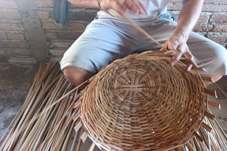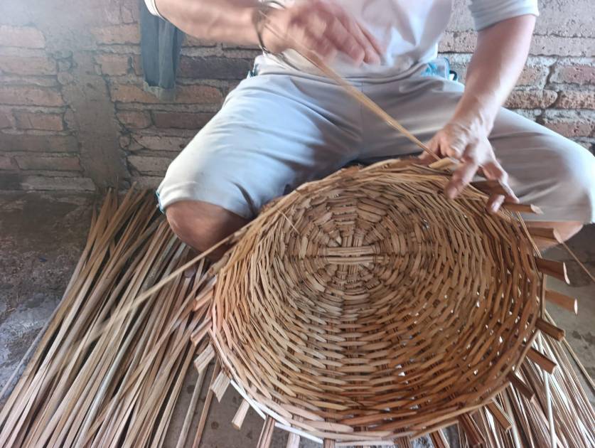 “Mi papá nos sacó adelante con este oficio”, expresa mientras teje el canasto que se suma a otros más que están en la zona destinada como taller.