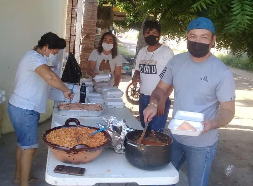 EL ROSARIO. _ Con el propósito de hacer más llevadera la espera a familiares de pacientes que padecen Covid-19, miembros del Centro de Acopio de Agua Verde llevaron alimentos en hospitales de Mazatlán.