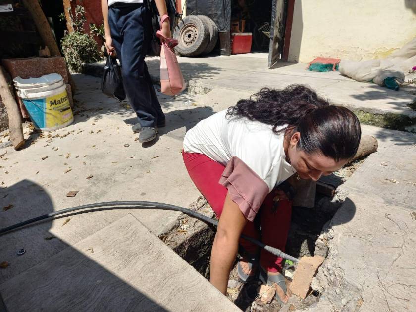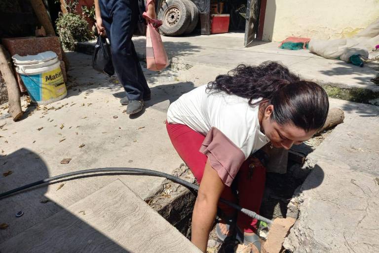 “El agua ya no sale ni con bombas, antes salía con bomba, a veces uno se desvelaba esperando para jalarla, pero ahora no sale ni a las 2, ni a las 3, ni a las 4 de la mañana, todo está seco y para muestra vea la toma de agua, seca completamente”, dijo Tania Gallardo mientras muestra el registro de agua potable.