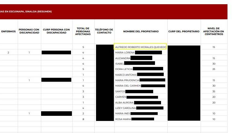 De acuerdo con una lista en poder de Noroeste, el censo se hizo el 6 de septiembre y se consideró que había alrededor de 14 viviendas afectadas, por lo que el monto económico llegaría para esas familias.