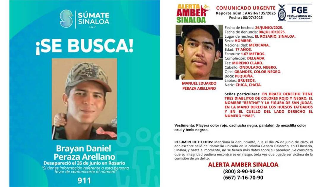 Los jóvenes desaparecidos fueron identificados como Manuel Eduardo, de 17 años, y Brayan Daniel Peraza Arellano, de 26 años.