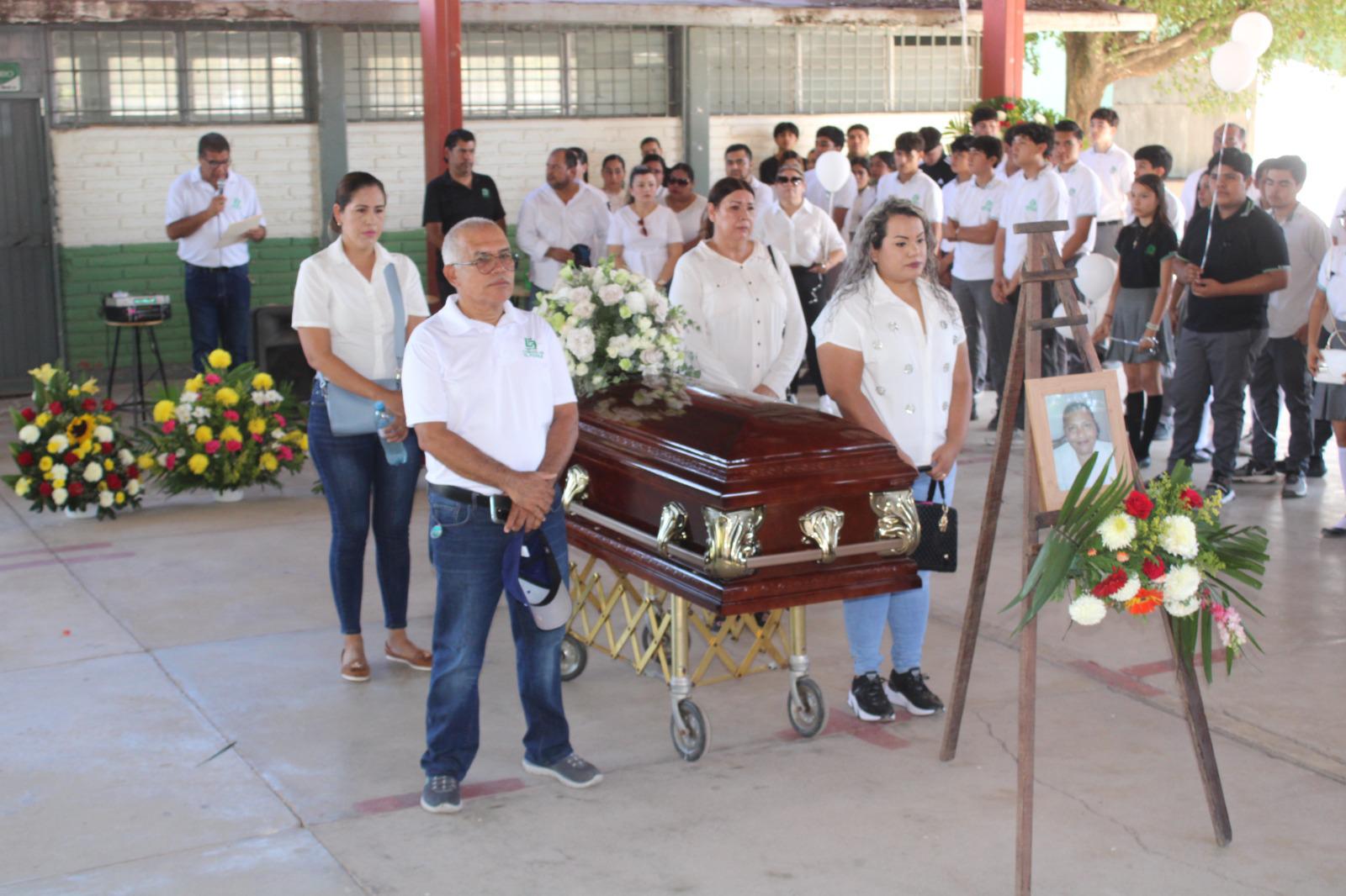 En el centro de la cancha cívica esperaban arreglos florales, alumnos con globos para efectuar un homenaje póstumo, con guardias realizadas por compañeros con los cuales compartió grandes momentos.