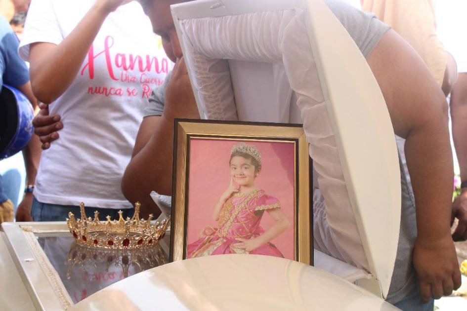 Hanna vestida de princesa, parecía dormir, el cabello que le cortaron cuando inicio su quimioterapia también se le coloco en el féretro, su papá Cristian señaló que fue su deseo colocárselo y que se fuera con su princesa.