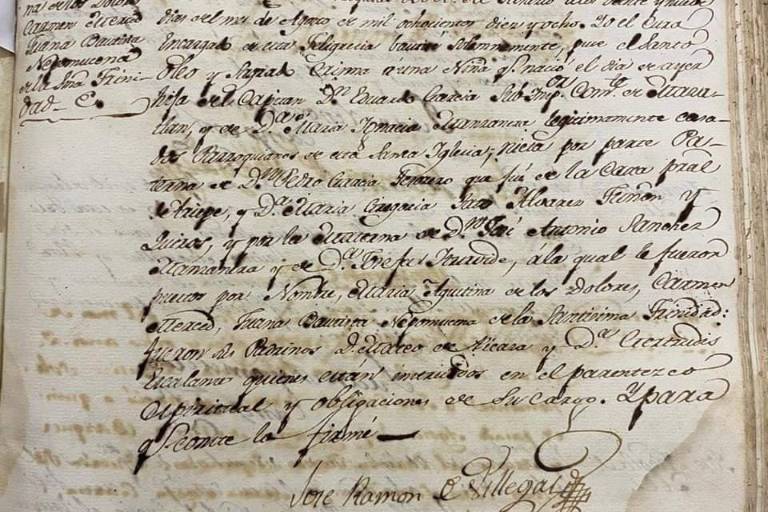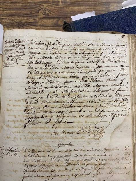 ”La imagen corresponde a la foja 111 del libro 13 de bautismos por Don Carlos Espinosa de los Monteros, Cura de Nuestra Señora del Rosario”, Concluyó.