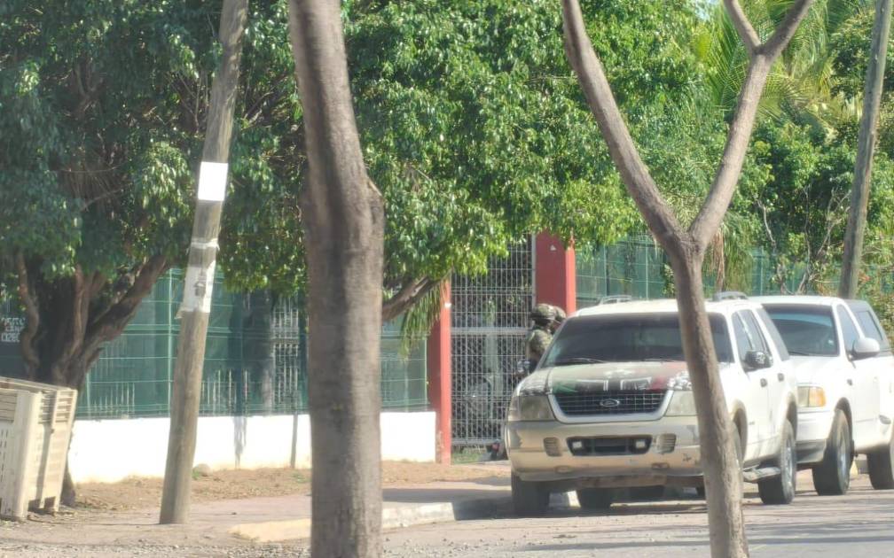 Camiones y otras unidades se encuentran en las instalaciones en mención dónde se apreció un significativo número de elementos castrenses.