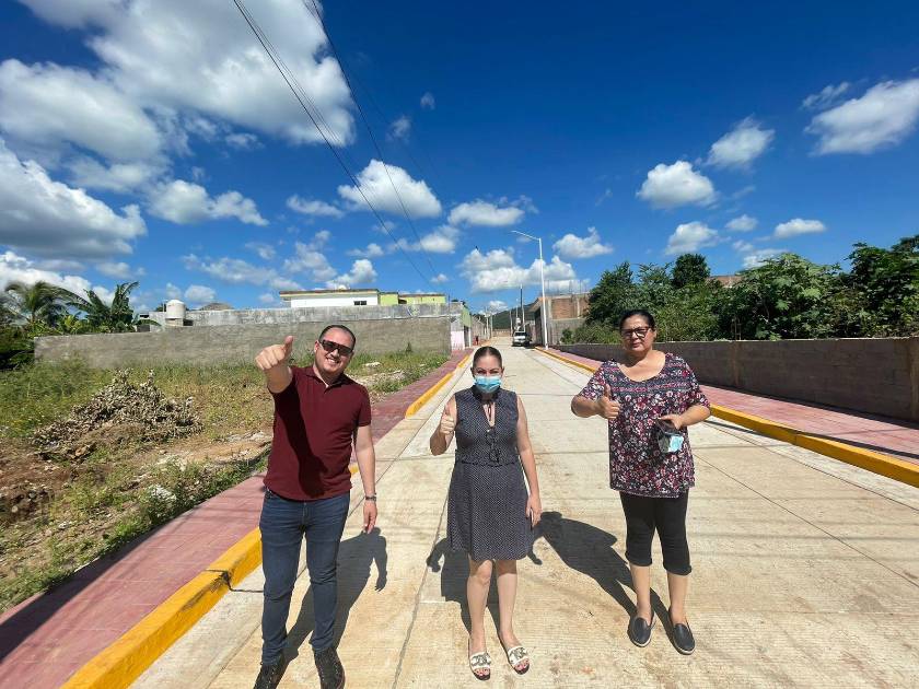 Esta mañana, en compañía de la ex Alcaldesa Martha Castillo y Verónica Montaño, recorrieron la Calle Cruz Padilla, recién culminada en la Colonia Valle Nuevo.