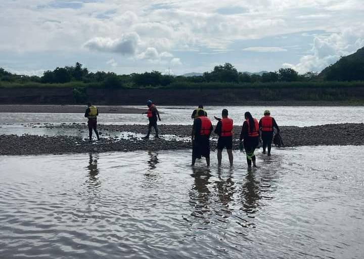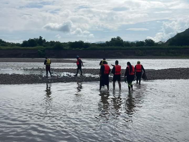 Fue a la altura del puente de río Baluarte donde los elementos con chalecos se lanzaron al afluente para recorrerlo con valor.