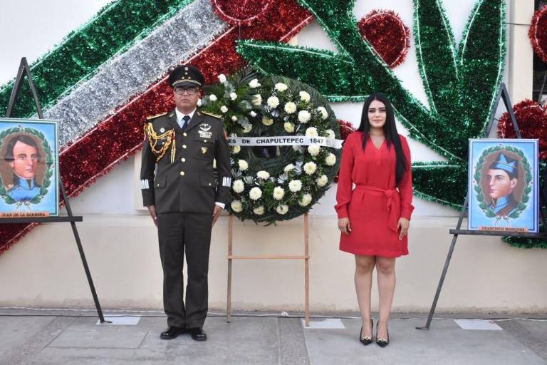 El mayor de infantería del 110 Batallón de Infantería, Jonathan Omar Arizmendi Cruz, hizo una remembranza de los seis cadetes del Heroico Colegio Militar: Juan de la Barrera, Agustín Melgar, Francisco Márquez, Fernando Montes de Oca, Vicente Suárez y Juan Escutia.