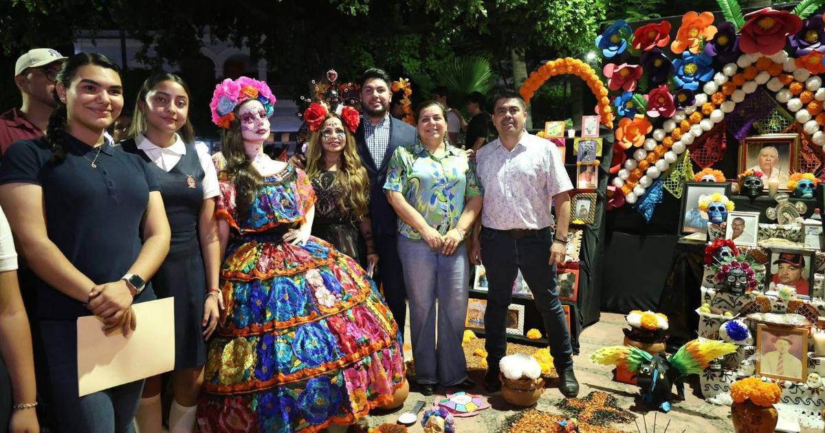 Además, alumnas y alumnos del Centro de Desarrollo Comunitario ofrecieron presentaciones musicales, mientras que maestros y estudiantes de la Escuela Primaria General José Aguilar Barraza expusieron calaveras con figuras representativas de personajes icónicos de México, agregando un toque distintivo a la celebración.