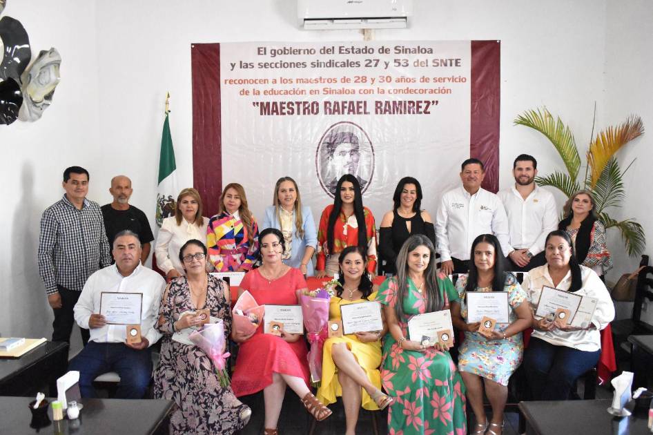 LA CRUZ, Elota._ En el marco del Día del Maestro, que se celebra el 15 de mayo, la Presidenta Municipal de Elota, Ana Karen Val Medina, hizo entrega de la medalla “Maestro Rafael Ramírez 2023” a 9 docentes por más de 28 años de servicio, se informó en un comunicado de prensa.