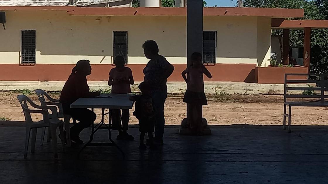 En la fila por las despensas hay niños, adultos mayores y madres de familia. Solo es una despensa por domicilio, y esto es corroborado por personal del Ayuntamiento de Elota con una copia de la identificación de cada beneficiario.