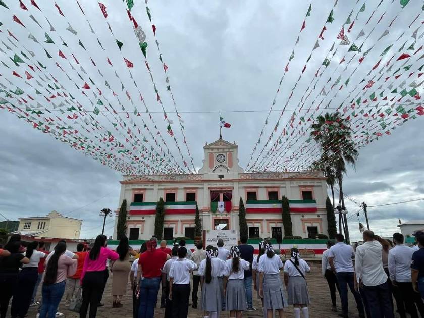 En el acto realizado por autoridades y funcionarios municipales, y alumnos de algunos planteles pese a la suspensión de clases rindiendo homenaje al lábaro patrio.