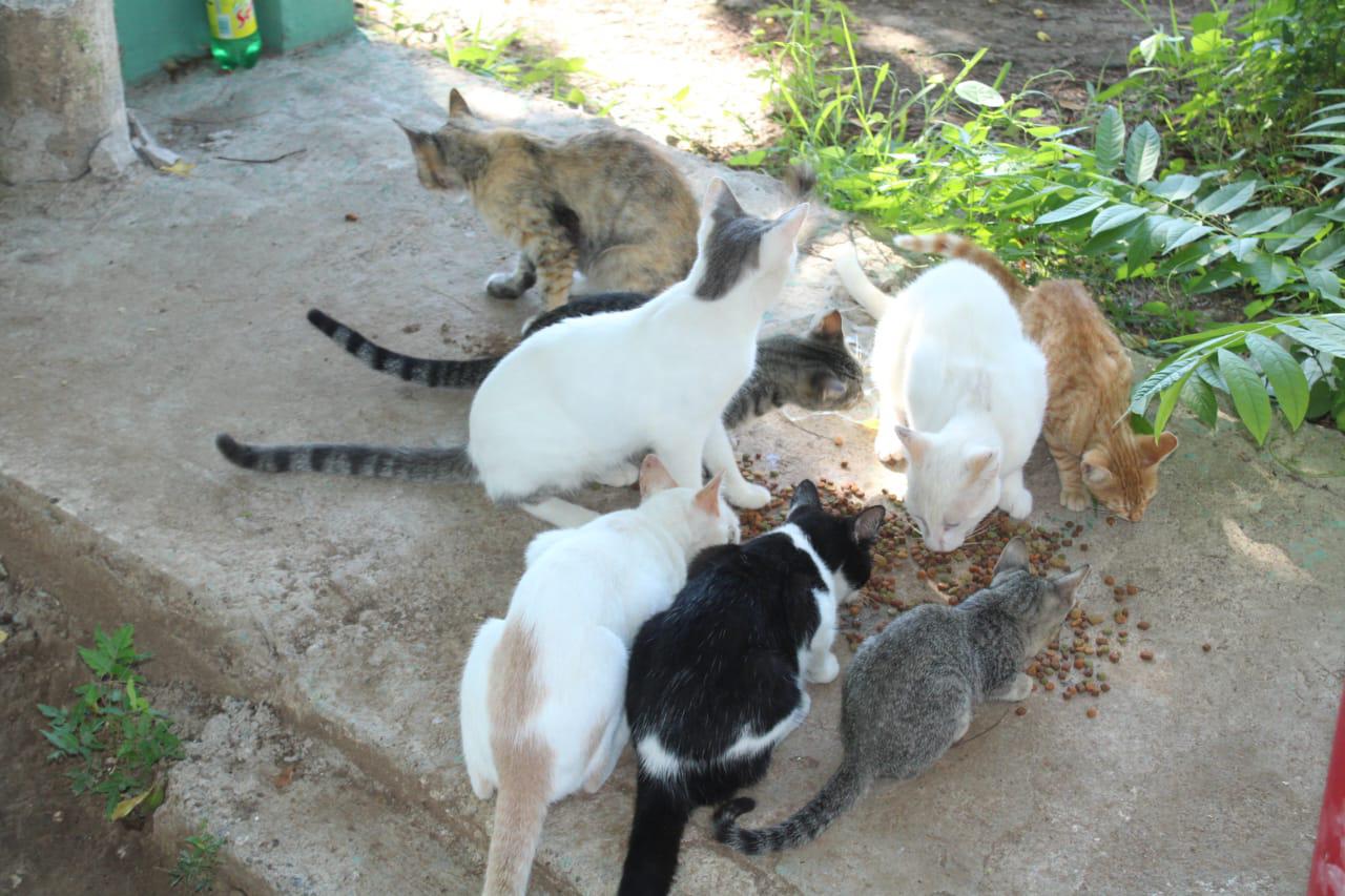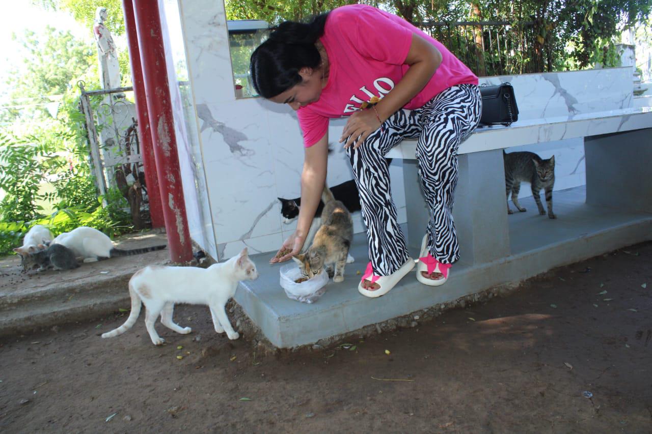 “No pues súper bien, porque a mí siempre me han gustado los gatos, antes no me dejaban tener, empecé teniendo uno que encontré en la calle y ya me dejaron tener un poco más y ya tengo cinco en la casa y como mínimo vienen a comer 16 al panteón”, precisó.