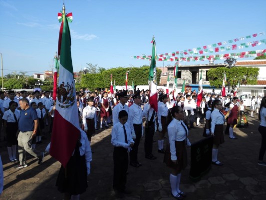 La titular de la Junta Patriotica, Gabriel Gómez Déraz, refirió que el contingente se conformó con 16 planteles de primaria, secundaria y preparatoria.