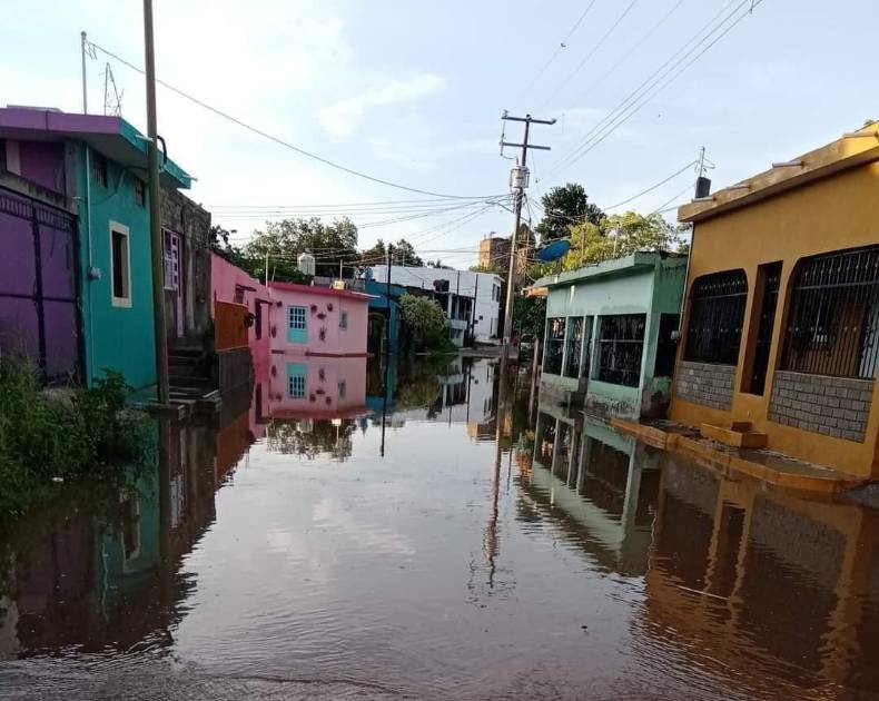 EL ROSARIO._ Las lluvias torrenciales registradas la madrugada de este miércoles desbordaron la Laguna del Iguanero y el agua corrió por las calles de la Colonia Calderón.
