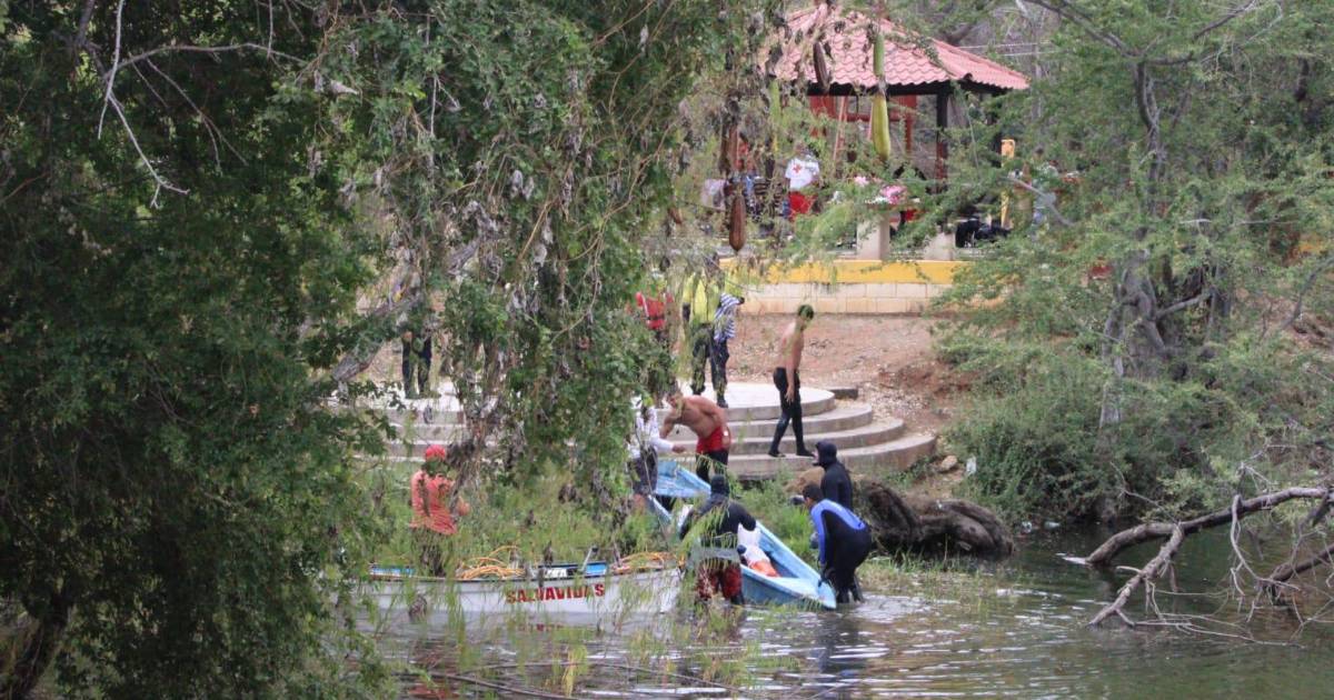 Después de una hora con 40 minutos de trabajo, los buzos sacaron a la superficie una de las manos del menor para después cubrirlo con una sábana y subir el cuerpo sin vida en una lancha.