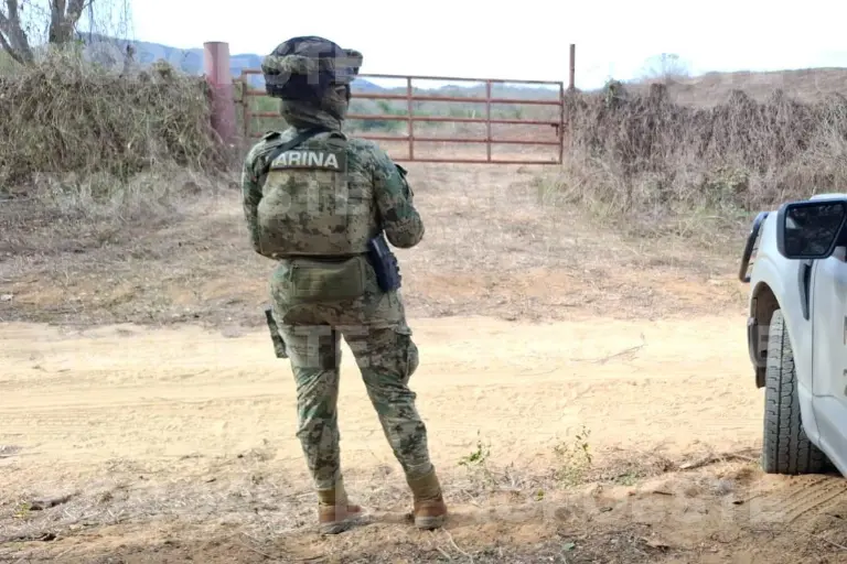El terreno donde fue hallada la segunda fosa clandestina se encuentra ubicado a unos 3 kilómetros al poniente del poblado de El Verde, cuya entrada se encuentra resguardada por elementos de la Secretaría de Marina Armada de México desde la mañana de este 9 de febrero.