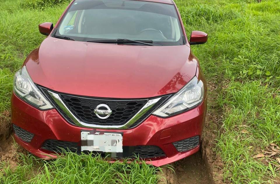 El vehículo es un auto Sentra, marca Nissan, color tinto y placas de circulación de Sinaloa.