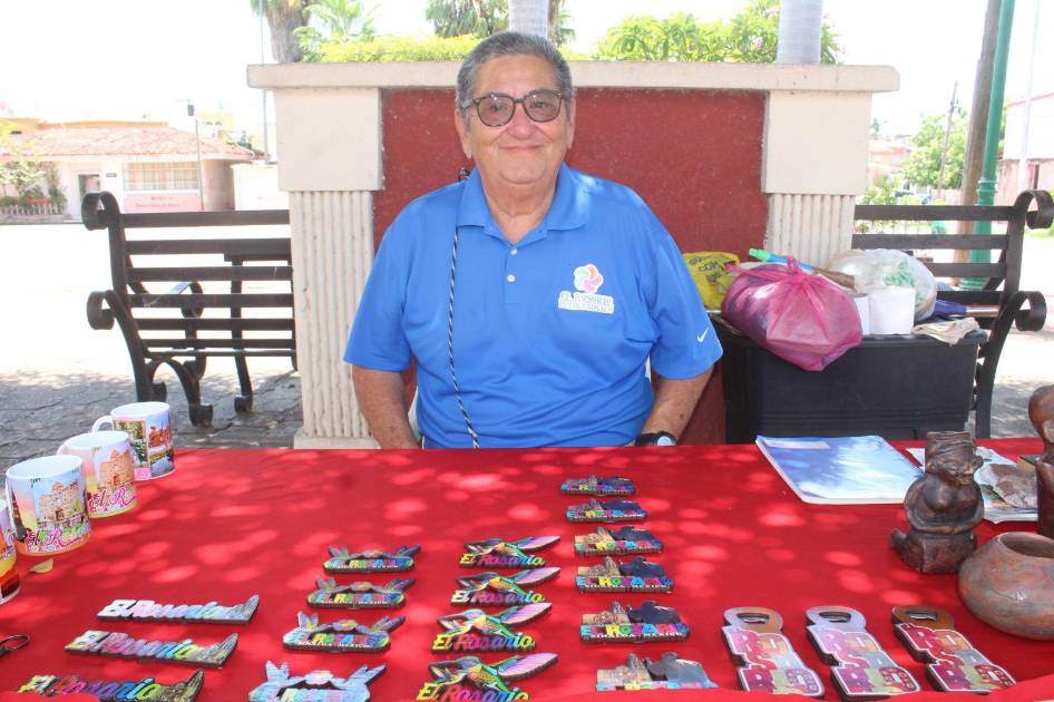 Razón por la cual, con una mesa con llaveros, imanes, tazas y réplicas de piezas arqueológicas de Chametla, se instala frente al parador fotográfico instalado en la zona del mencionado templo mariano para atender a los visitantes.