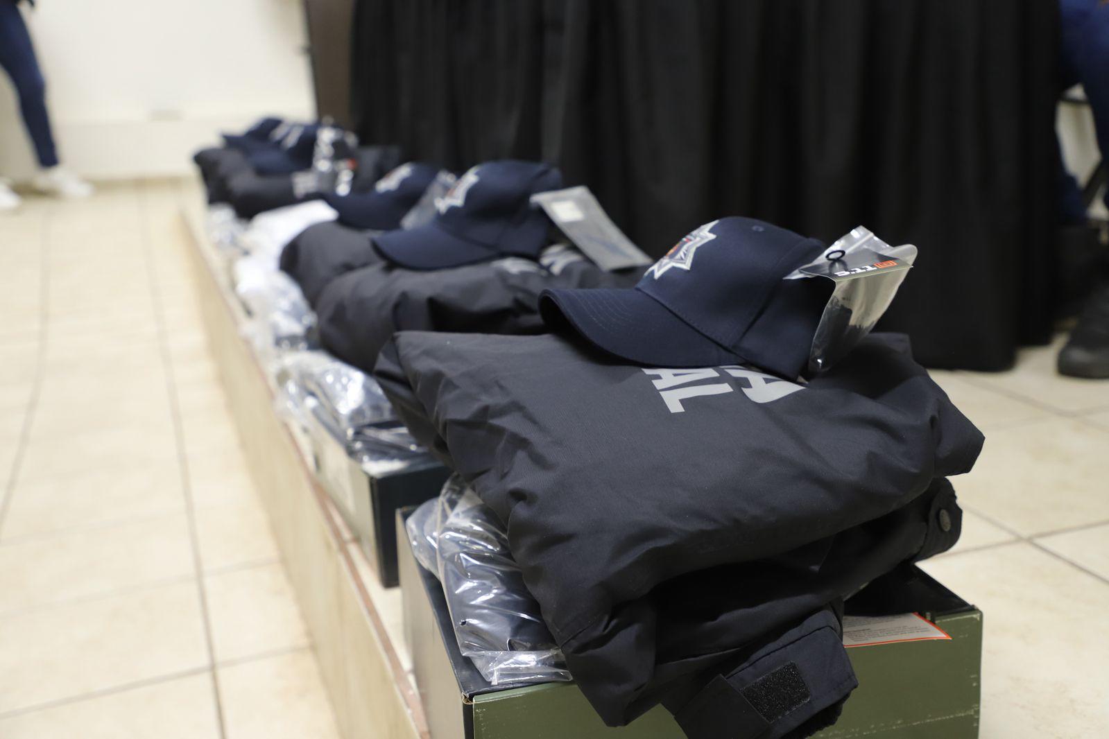 Fueron 45 uniformes completos entregados para que los activos cuenten con la indumentaria necesaria para desempeñar su labor, los cuales consisten en chamarra, camisa, pantalón, zapatos y cachuchas; así mismo, se hizo entrega de 20 uniformes a personal administrativo.