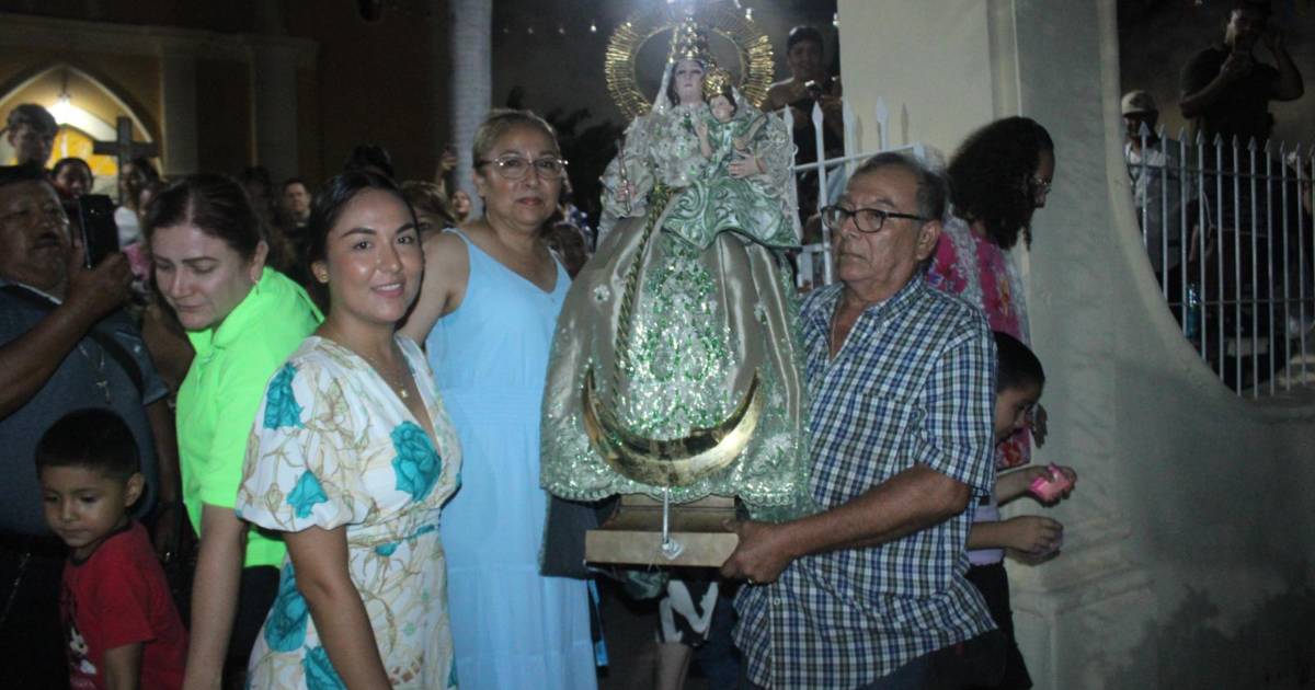 CACALOTÁN, Rosario._ Tras una espera de una década, Ermi Delia Martínez Sánchez y su hija Yered Torres Martínez pudieron cumplir el deseo de donar el vestido a la Virgen de Loreto durante su fiesta patronal en Cacalotán.