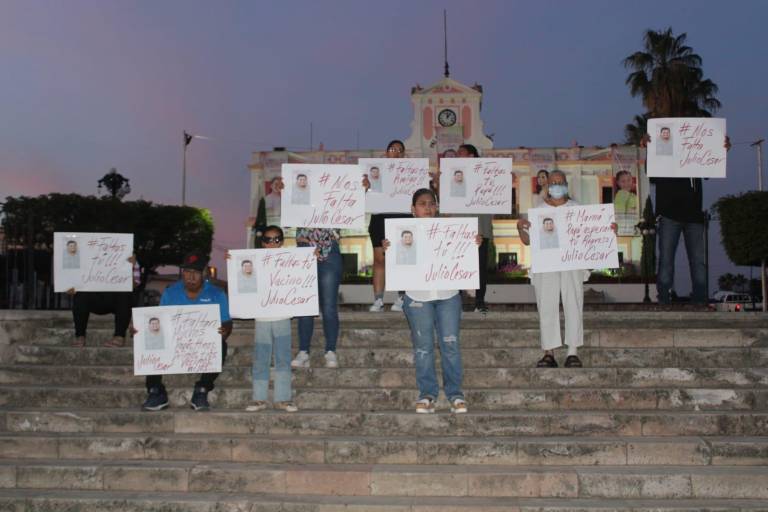 EL ROSARIO._ Con la consigna de “¡Nos falta Julio César!”, familiares de Julio César Madrid Jiménez se manifestaron este miércoles en la explanada municipal de El Rosario para exigir a las autoridades el regreso del joven.