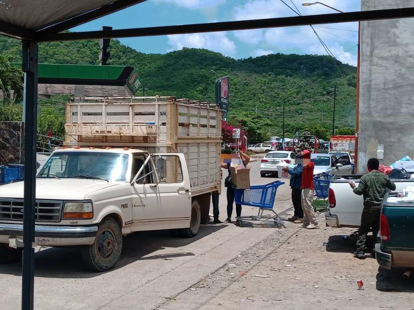 Harina, leche, huevos, pollos, tanques con gas, son los principales elementos con los que se llenan las unidades de familias completas que acuden de la zona alta ingresando por la sindicatura de Matatán.