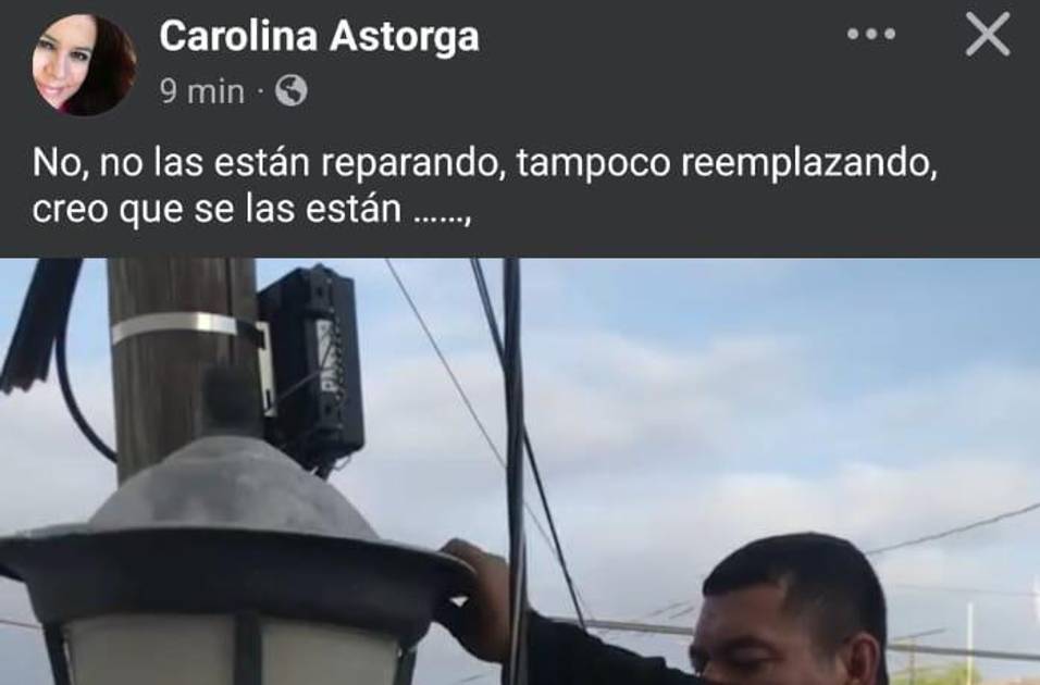 “No, no las están reparando, tampoco reemplazando, creo que se las están...”, escribió como descripción a la publicación, en la que algunos usuarios completaron la oración con “robando”.
